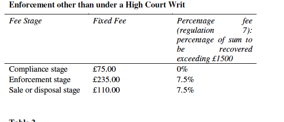 Commenced by passing to Enforcement Agent (fees can be charged…from the receipt by the enforcement agent of instructions to use that procedure in relation to a sum to be recovered up to but not including the commencement of the enforcement stage)